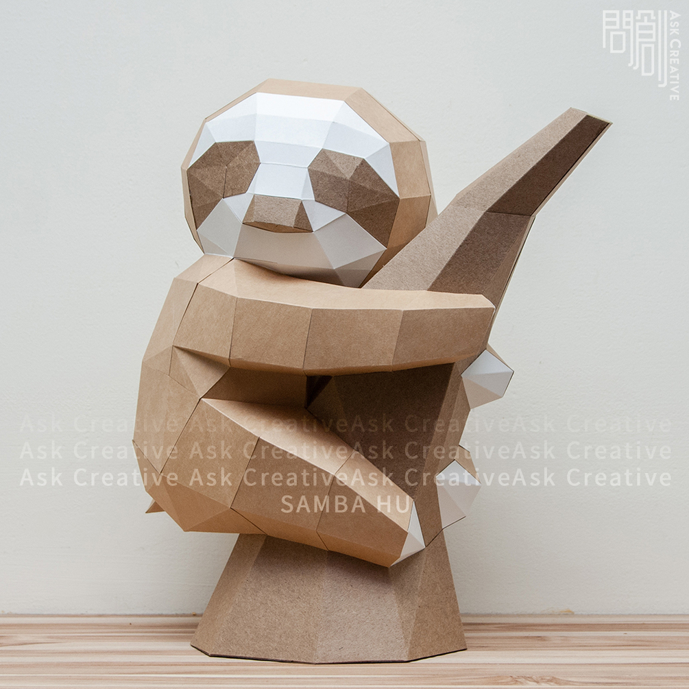Sloth paper model,Papercraft , DIY , Low poly , PDF Papercraft , Sloth Model , Sloth low poly , Sloth , polygonal , decoration , AskCreative